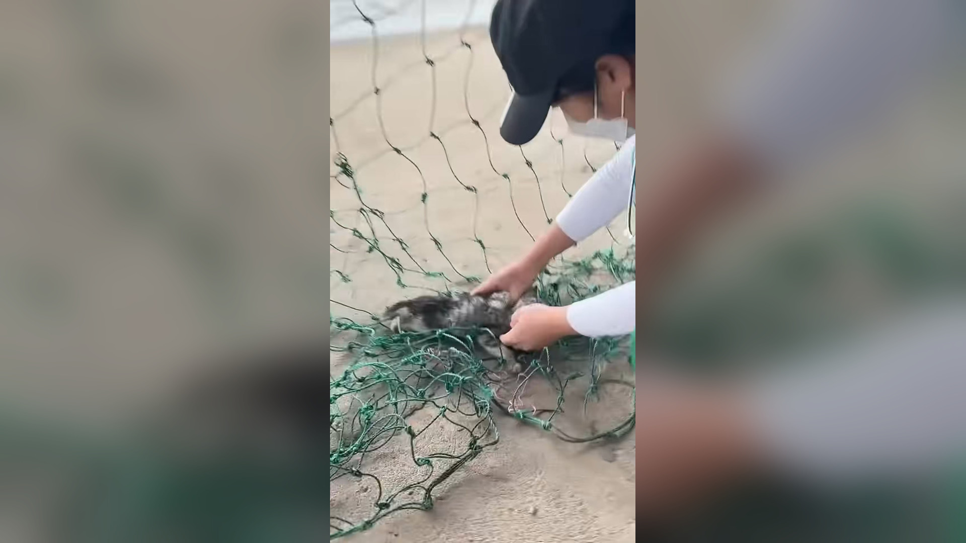 H1804010_Big cat caught in net exhausted and unable to escape , luckily saved #rescueanimals #animalsoftiktok