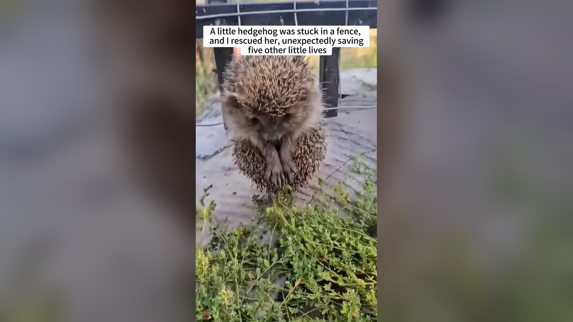 H1104015_A little hedgehog was stuck in a fence, and I rescued him,unexpectedly saving five other little live